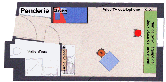 Des choix originaux et innovants de mobilier facilitent une utilisation optimale d’un espace adapté aux exigences de l’étudiant.