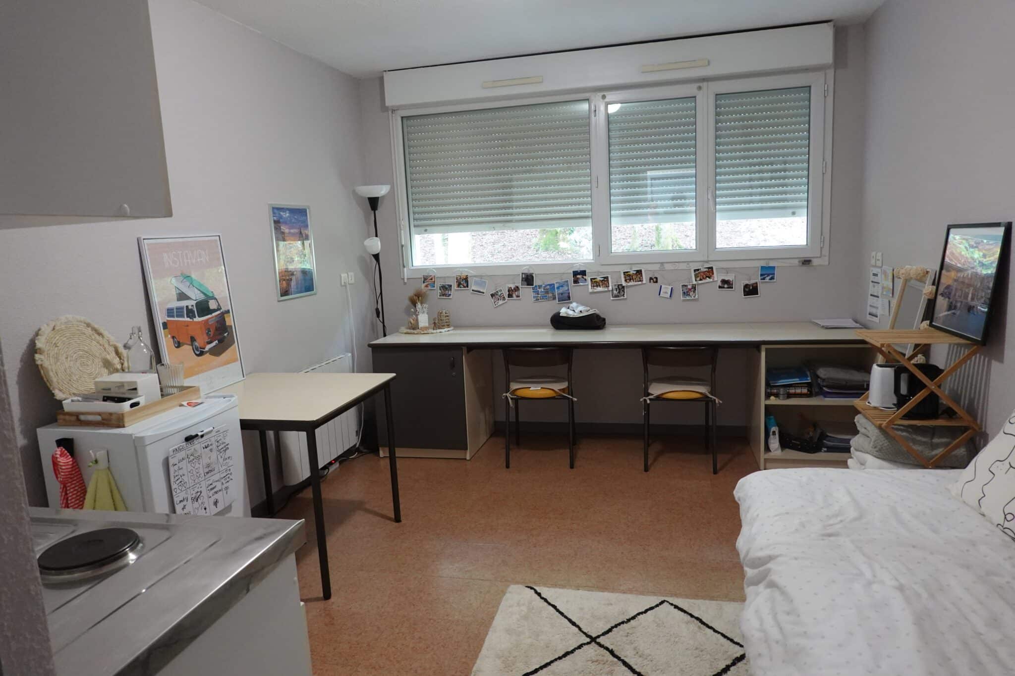 La résidence située en prolongement du Lycée offre un parking, une salle de travail en groupe ou de réunion, un garage 2 roues et la présence d’un gardien.